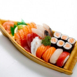 10 sushis assortis, 6 makis, 6 California makis et 30 pièces de sashimis assortis. Servi avec 2 salades, 2 soupes et 2 riz.